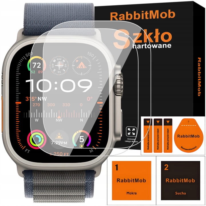 Zestaw: 2x - Szkło hartowane RabbitMob na zegarek do Apple Watch Ultra / Ultra 2 / Ultra 3 - 49mm