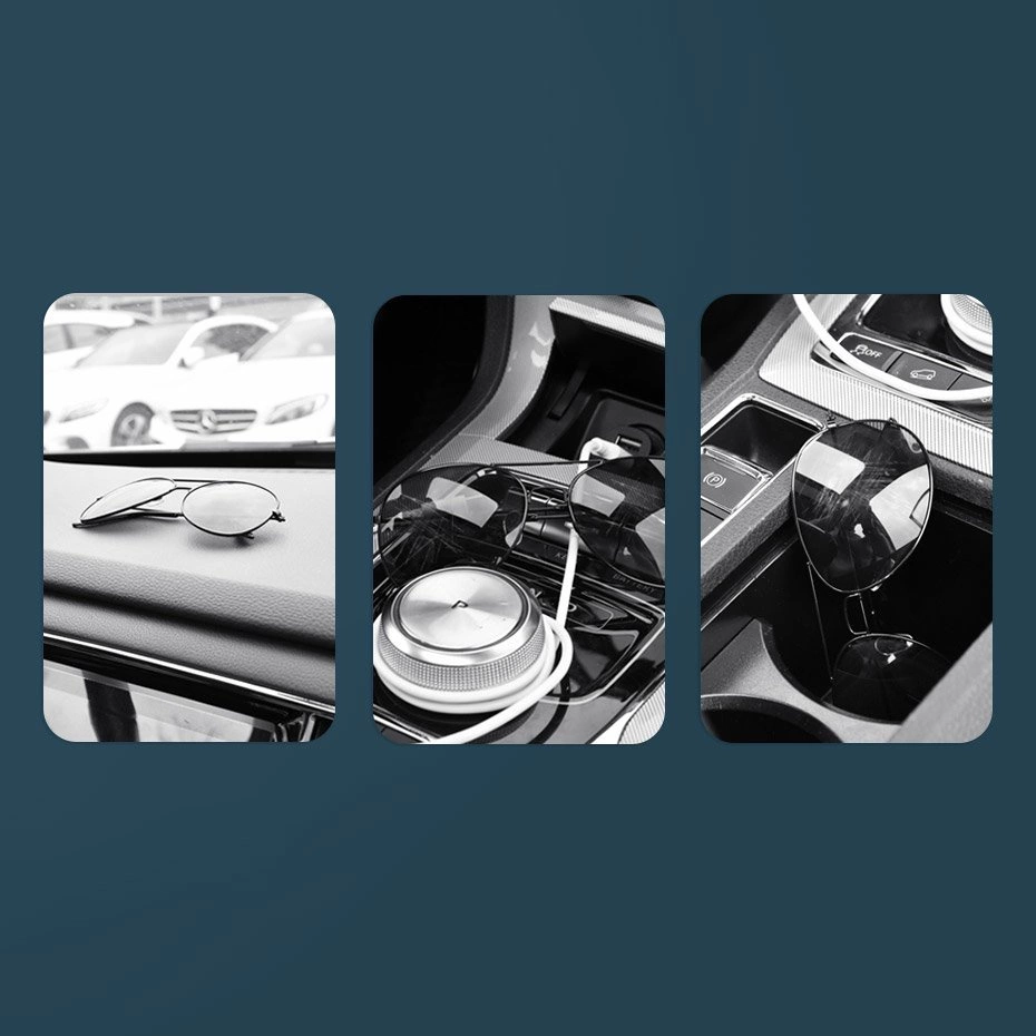 Okulary na desce rozdzielczej lub położone luzem w uchwycie na kubek? Na zakrętach lub podczas gwałtownego hamowania mogą wypaść, zepsuć się i zdekoncentrować kierowcę. Umieszczone w klipsie będą zawsze w Twoim zasięgu. Wystarczy, że sięgniesz po nie, nie odrywając wzroku od ulicy. Ściągniesz je jedną ręką!
