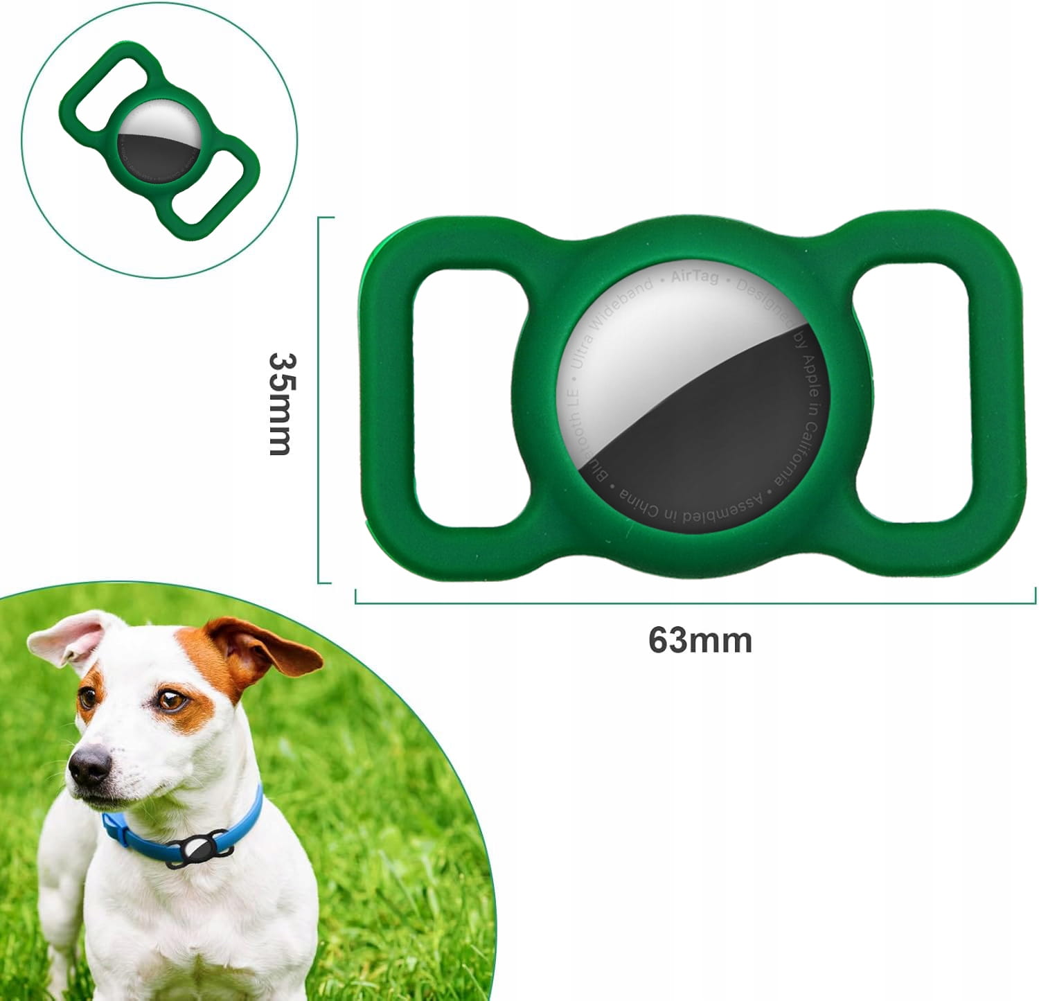 ETUI DO APPLE AIRTAG WZMACNIANE NA OBROŻĘ DLA PSA KOTA DO SMYCZY | ZIELONE