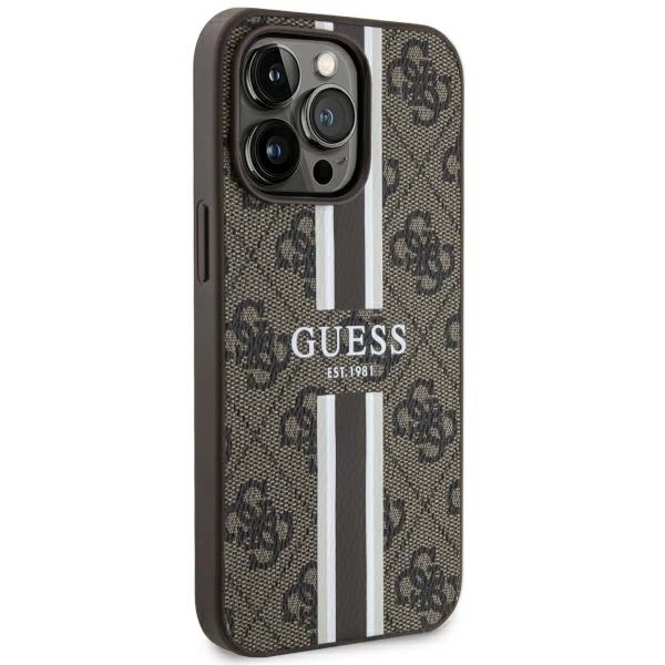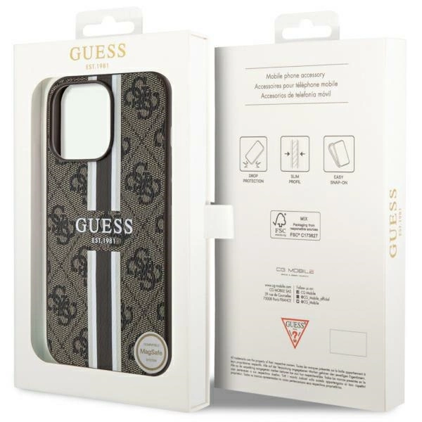 Etui Guess 4G Printed Stripes MagSafe na iPhone 13 Pro / iPhone 13 - brązowe
