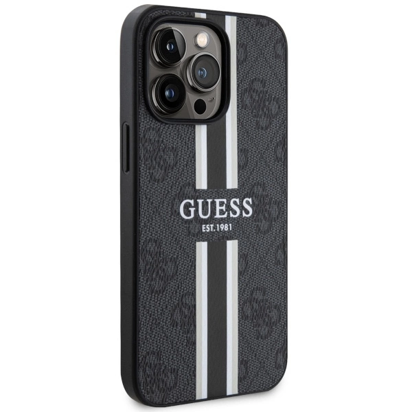 Etui Guess 4G Printed Stripes MagSafe na iPhone 13 Pro / iPhone 13 - czarne