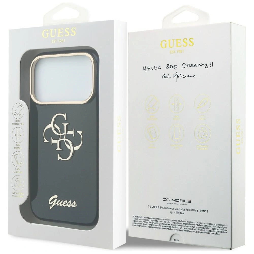 Etui Guess z kolekcji Etui Guess IML 4G Script Metal charakteryzuje elegancki, rozpoznawalny emblemat 4G sygnowany logo GUESS.