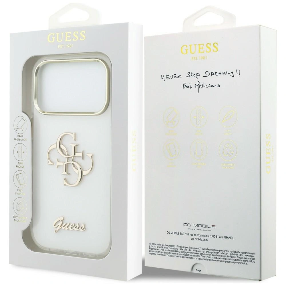Etui Guess IML 4G Script Metal na iPhone 17 Pro - białe