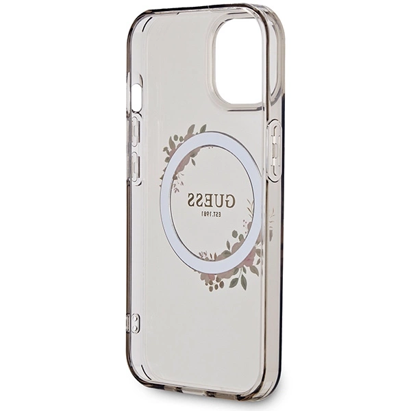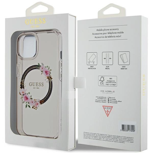 Etui Guess IML Flowers Wreath MagSafe na iPhone 15 / 14 / 13 - czarne