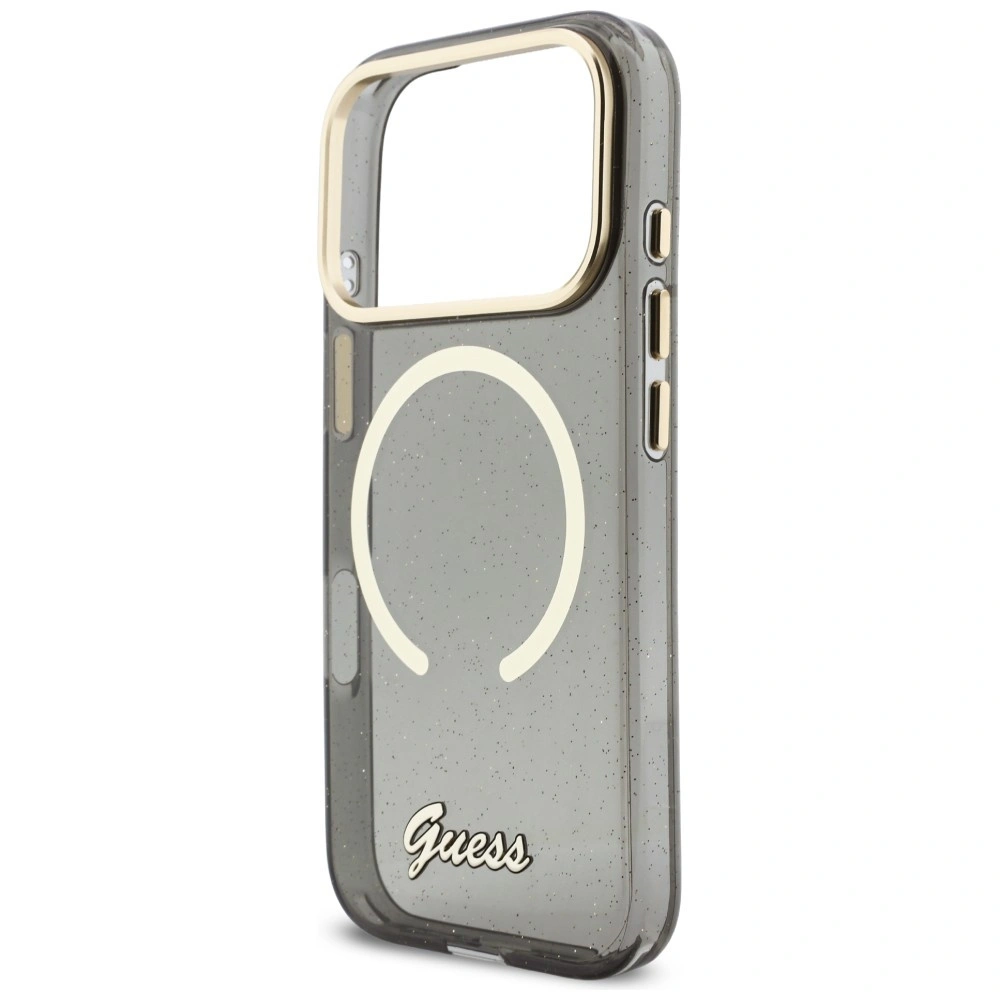 Etui Guess IML Glitters Script Strap MagSafe na iPhone 17 Pro - czarne