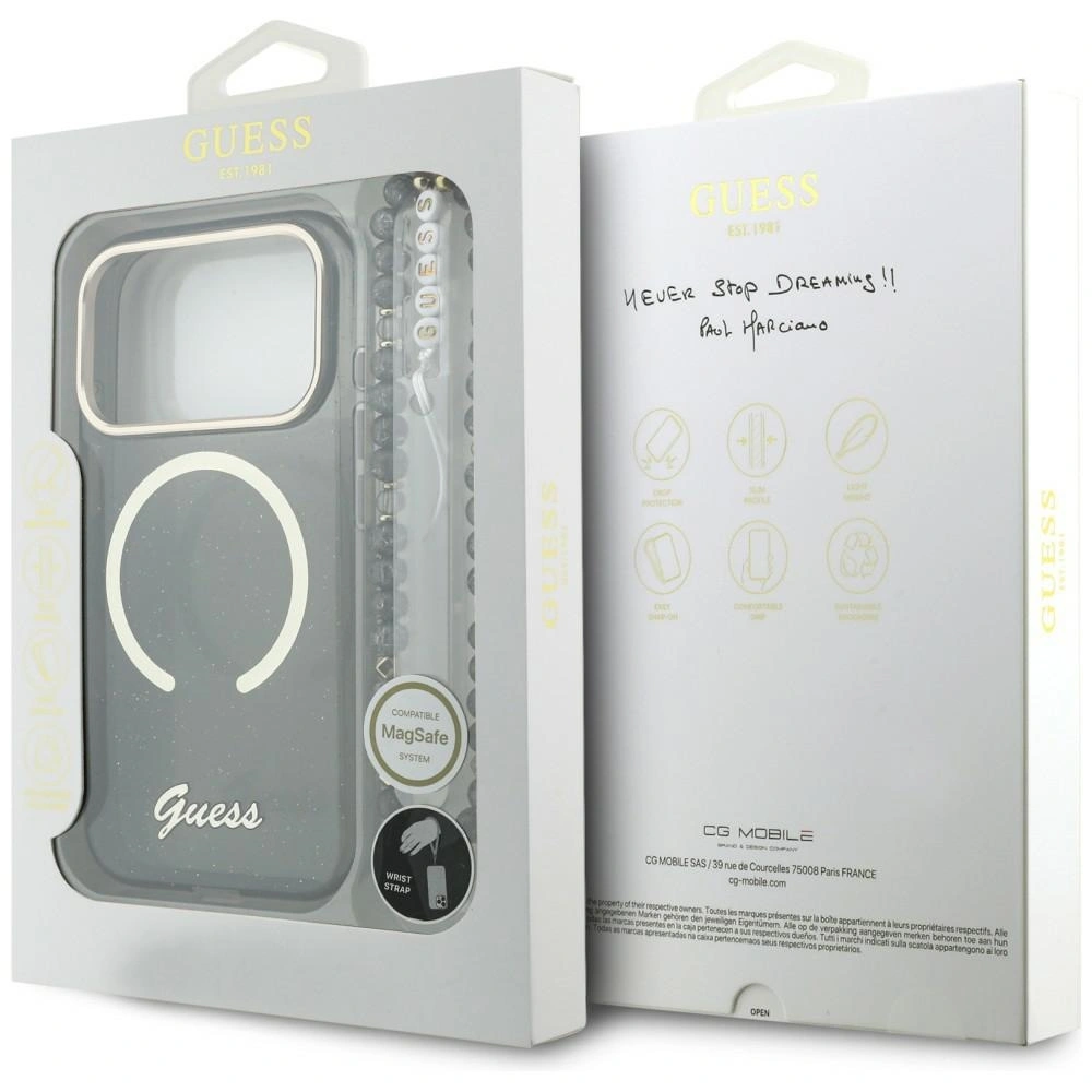 Etui Guess IML Glitters Script Strap MagSafe
