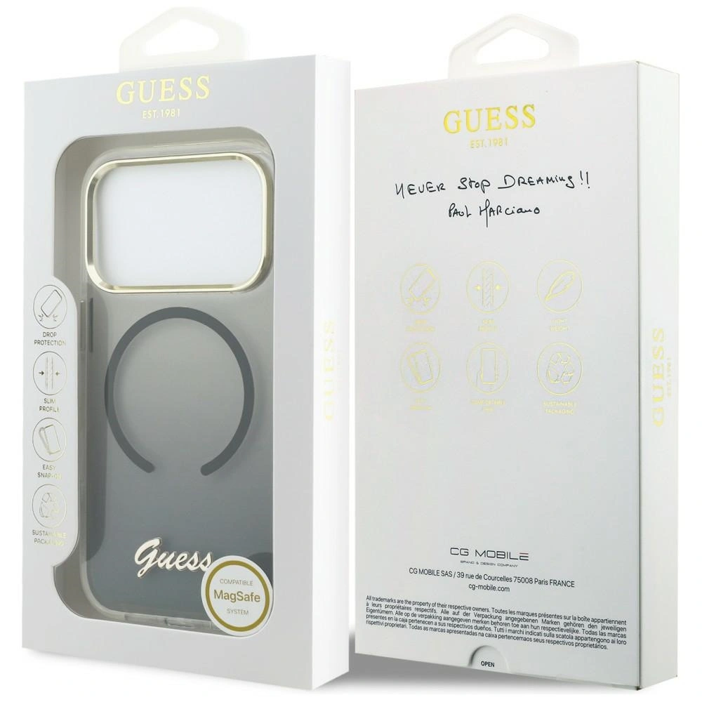 Etui Guess IML Gradient Script Metal MagSafe na iPhone 17 Pro Max - czarne