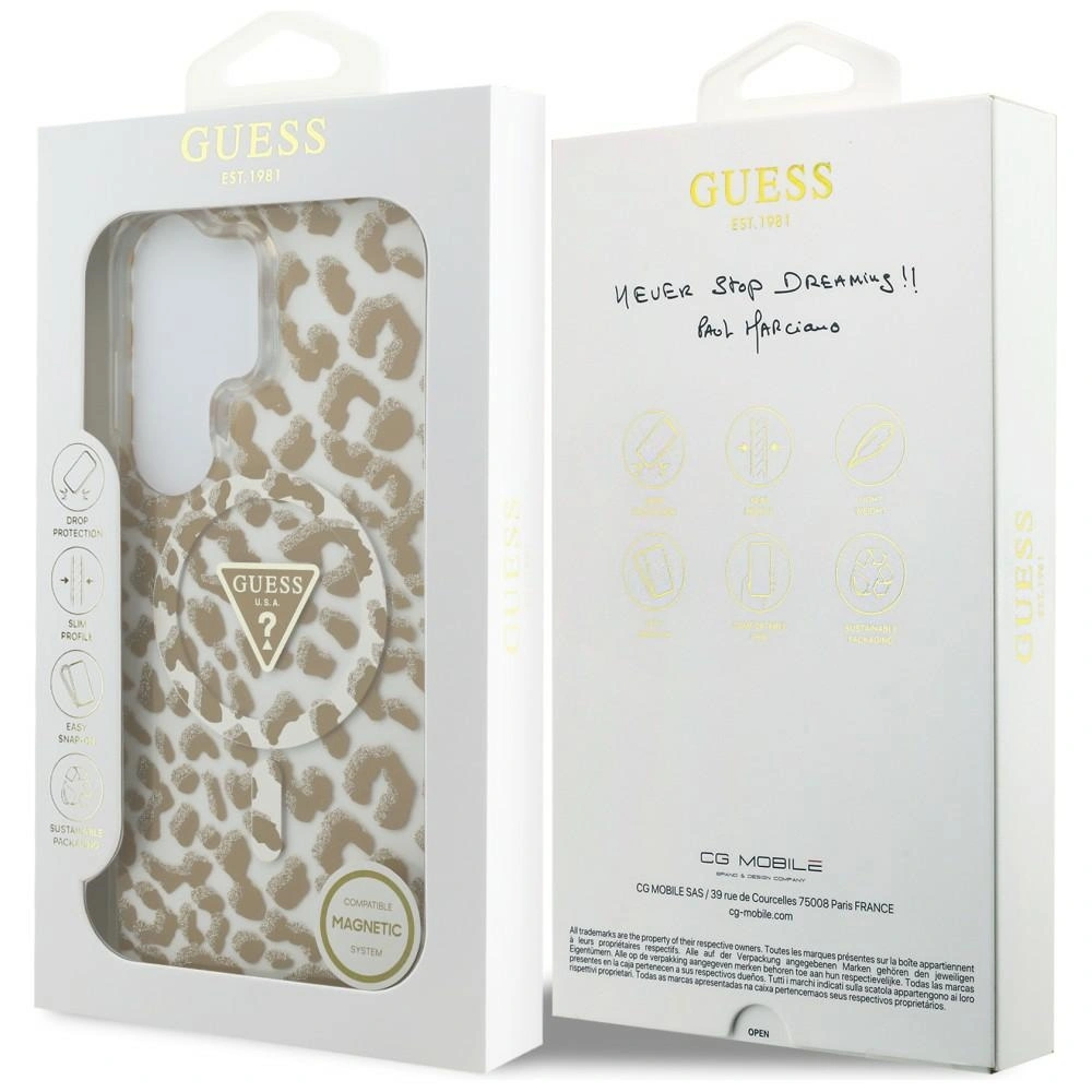 Etui Guess IML Leopard Print Triangle MagSafe na Samsung Galaxy S26 Ultra - brązowe