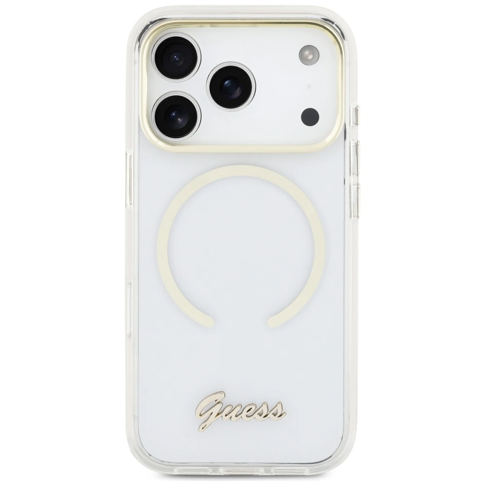 Etui Guess IML Script Metal MagSafe na iPhone 17 Pro - przezroczyste