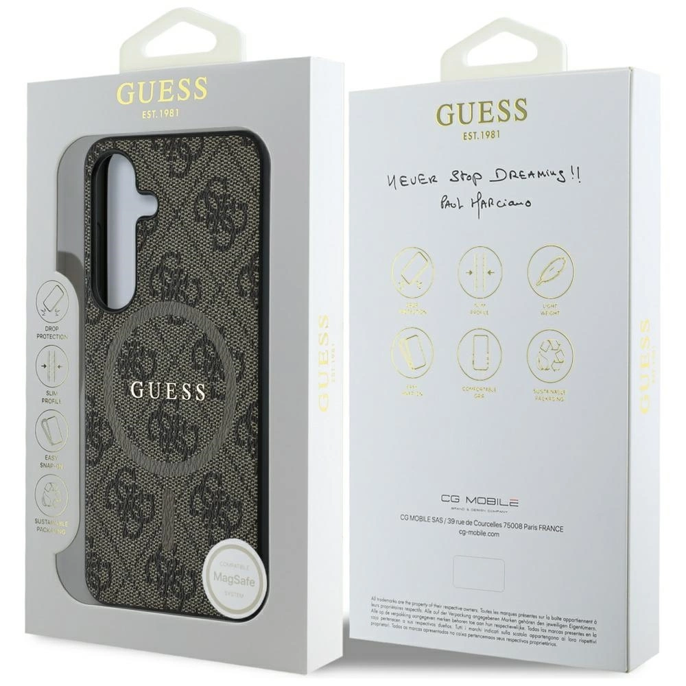 Etui Guess Leather 4G Colored Ring Classic Logo MagSafe Samsung Galaxy S25 brązowy