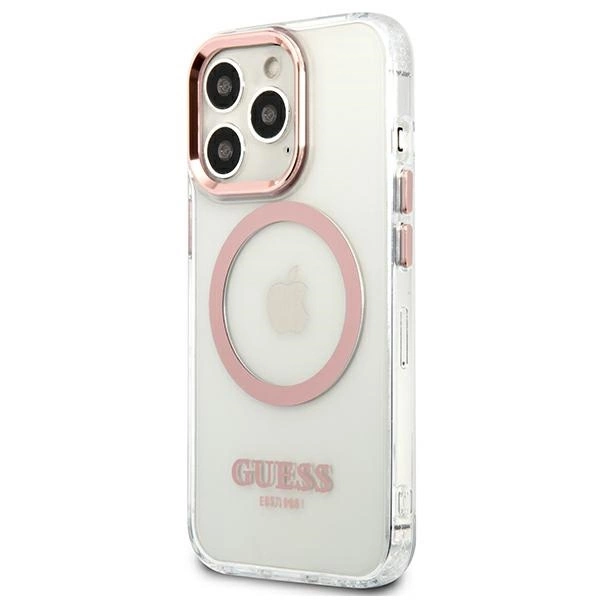 Etui Guess Metal Outline MagSafe na iPhone 13 Pro / iPhone 13 - różowe
