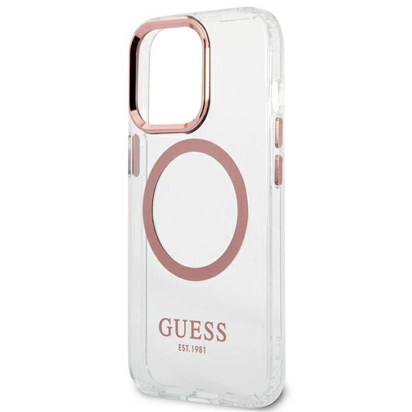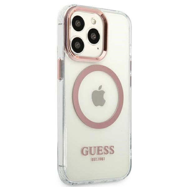 Etui Guess Gold Outline Translucent MagSafe na iPhone 13 Pro / iPhone 13 - różowe