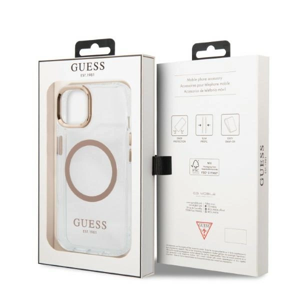 Etui Guess Metal Outline Magsafe na iPhone 15 / 14 / 13 - złote