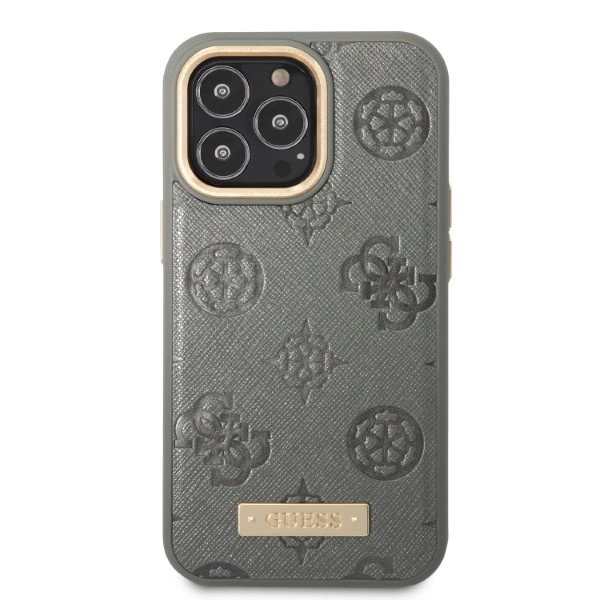 Etui Guess Peony Logo Plate MagSafe na iPhone 13 Pro / iPhone 13 - szare