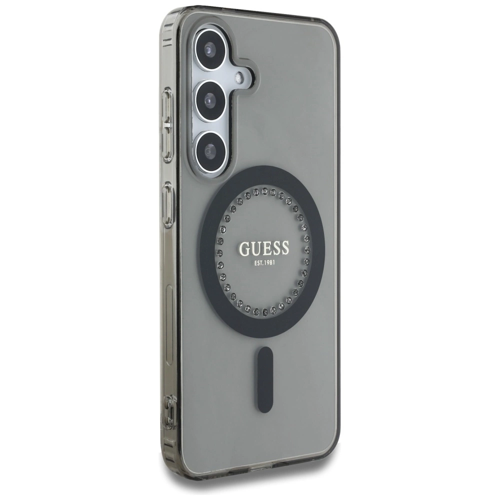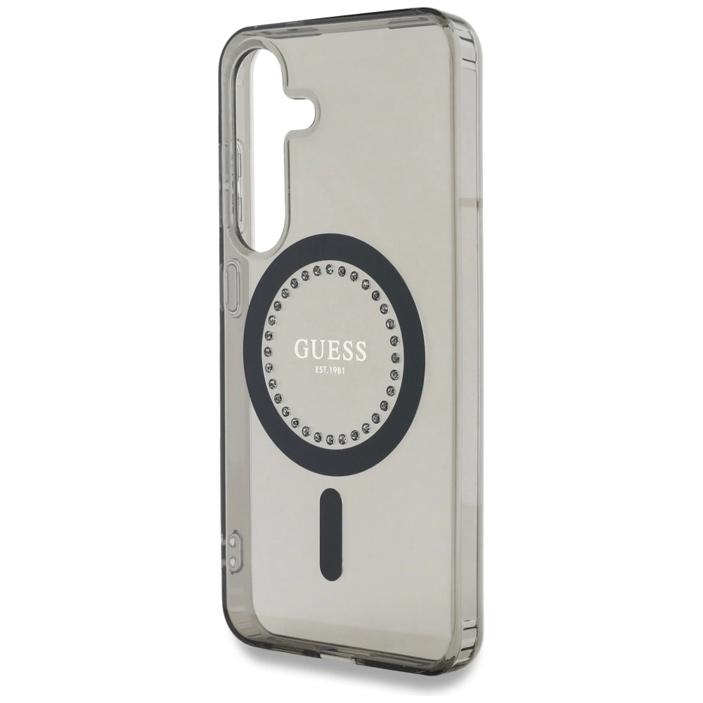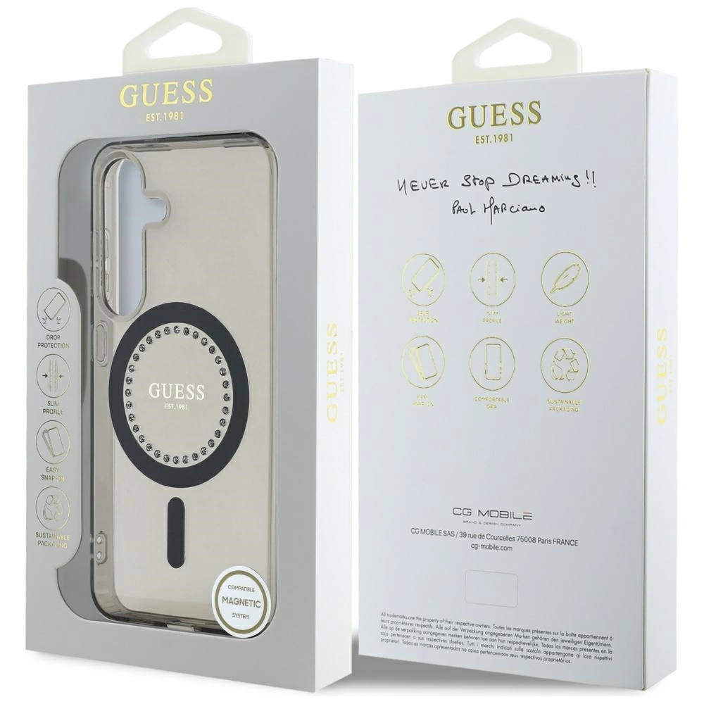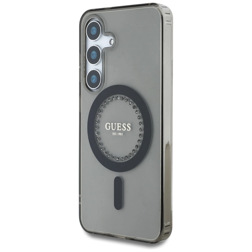 Etui Guess Rhinestones Printed Classic Logo MagSafe Samsung Galaxy S25 czarny