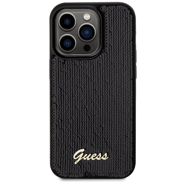 Etui Guess Sequin Script Metal na iPhone 13 Pro / 13 - czarne