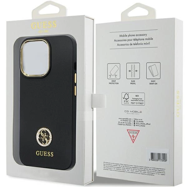 Etui Guess Strass Metal Logo na iPhone 13 Pro 6.1" - czarne