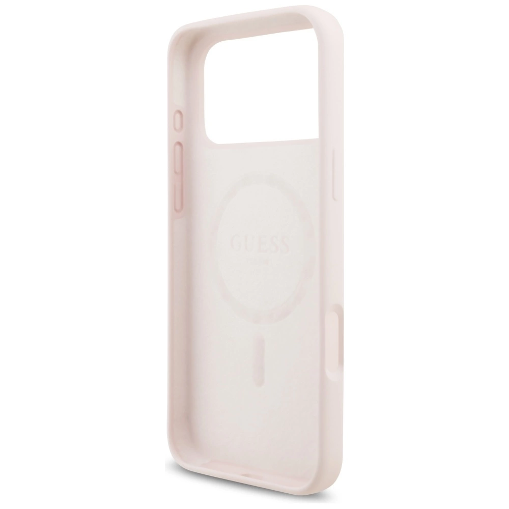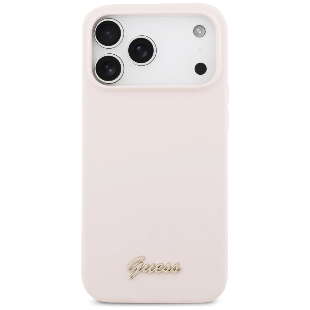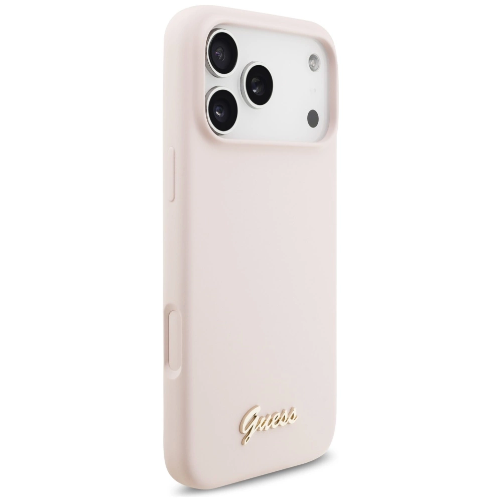 Etui Guess Silicone Script Metal Logo MagSafe na iPhone 17 Pro Max - różowe