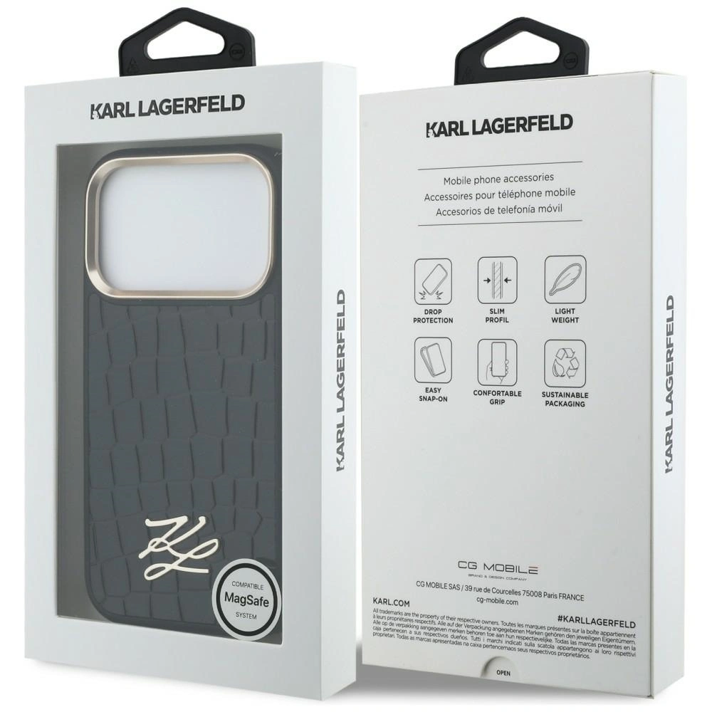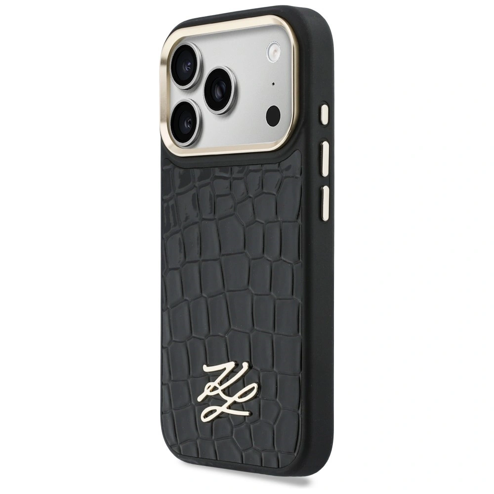 Etui Karl Lagerfeld Croco KL Script Logo MagSafe na iPhone 17 Pro - czarne