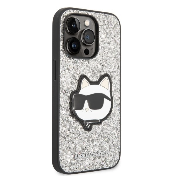 Etui Karl Lagerfeld Glitter Choupette Head na iPhone 14 Pro Max - srebrne