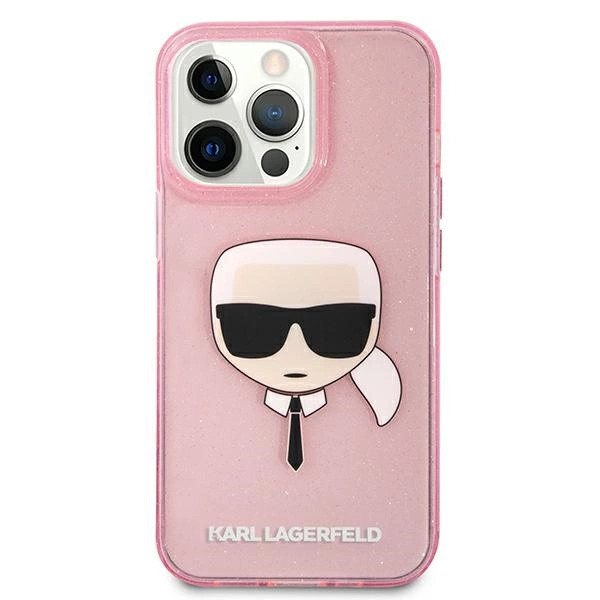 Etui Karl Lagerfeld Glitter Karl's Head na iPhone 13 Pro Max - różowe