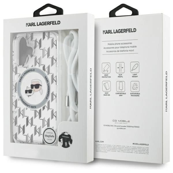 Etui Karl Lagerfeld IML Crossbody Monogram Karl & Choupette Head MagSafe na iPhone 16 - przezroczyste