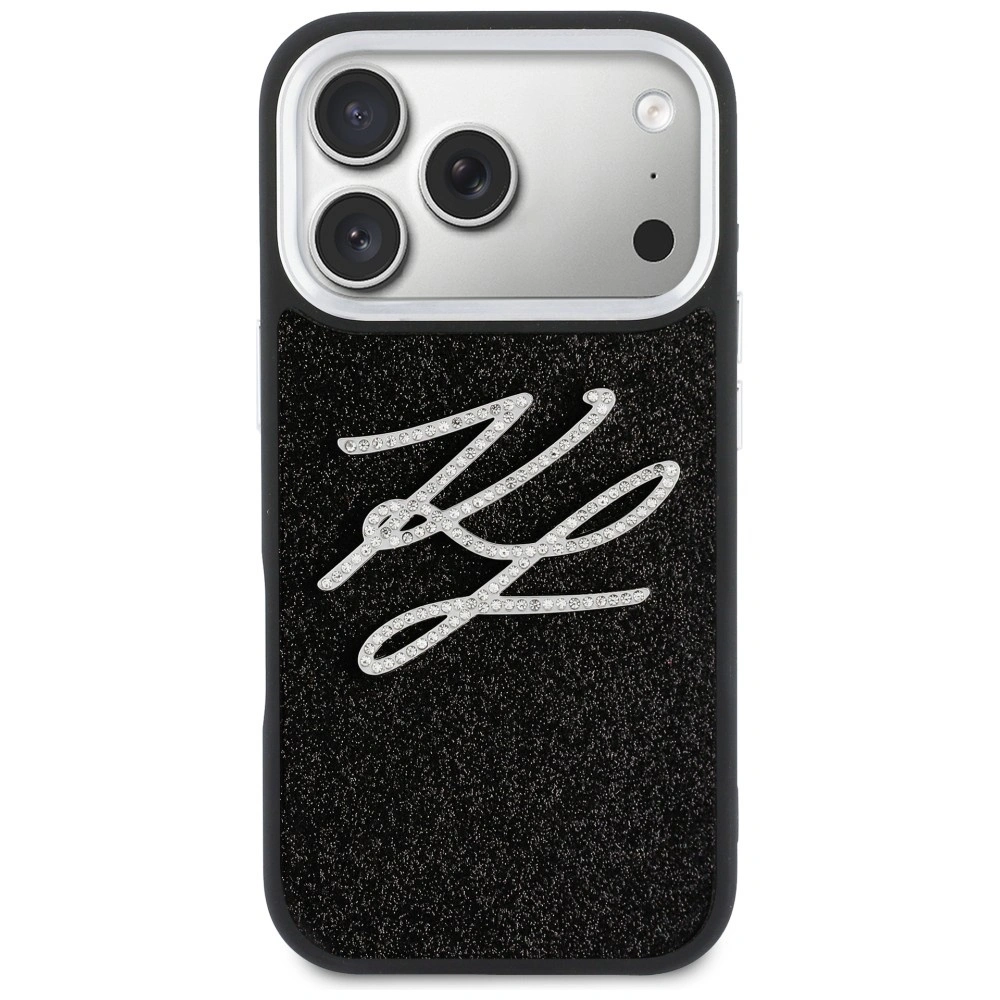 Etui Karl Lagerfeld IML Glitter KL Diamond Logo na iPhone 17 Pro - czarne