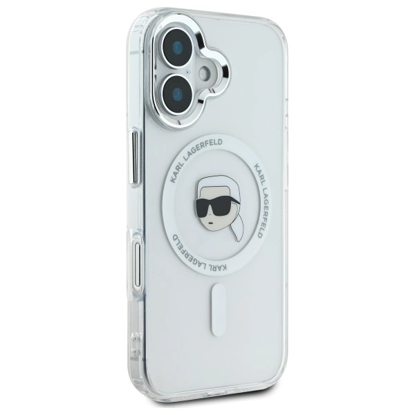 Etui Karl Lagerfeld IML Metal Karl Head MagSafe na iPhone 16 - białe