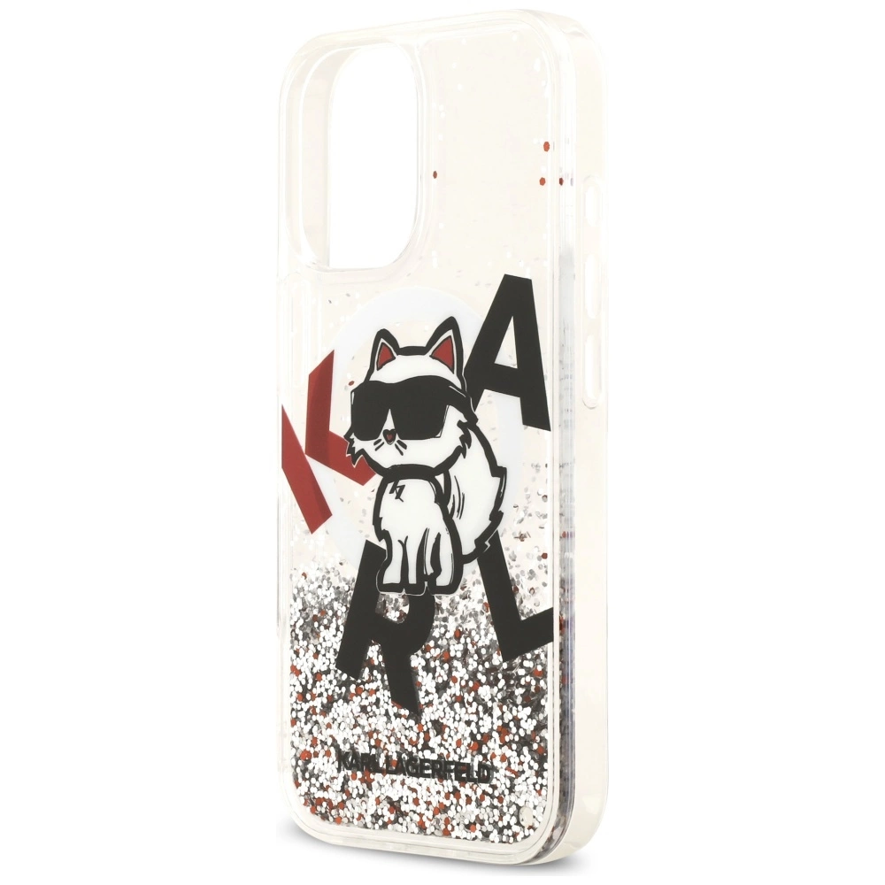 Etui Karl Lagerfeld Liquid Glitter Choupette Logo MagSafe na iPhone 17 - przezroczyste