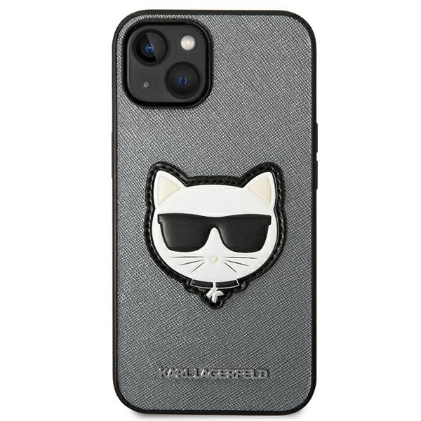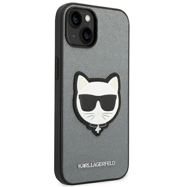Etui Karl Lagerfeld Saffiano Choupette Head Patch na iPhone 14 - srebrne