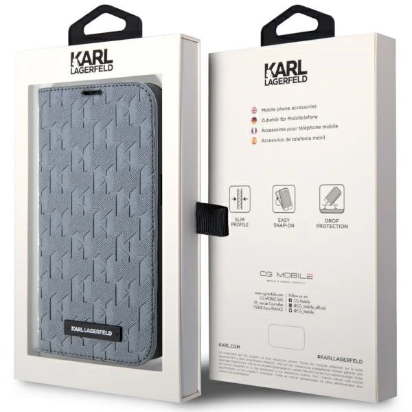 Etui Karl Lagerfeld Saffiano Mono Metal Logo na iPhone 14 Pro Max 6,7" - szare