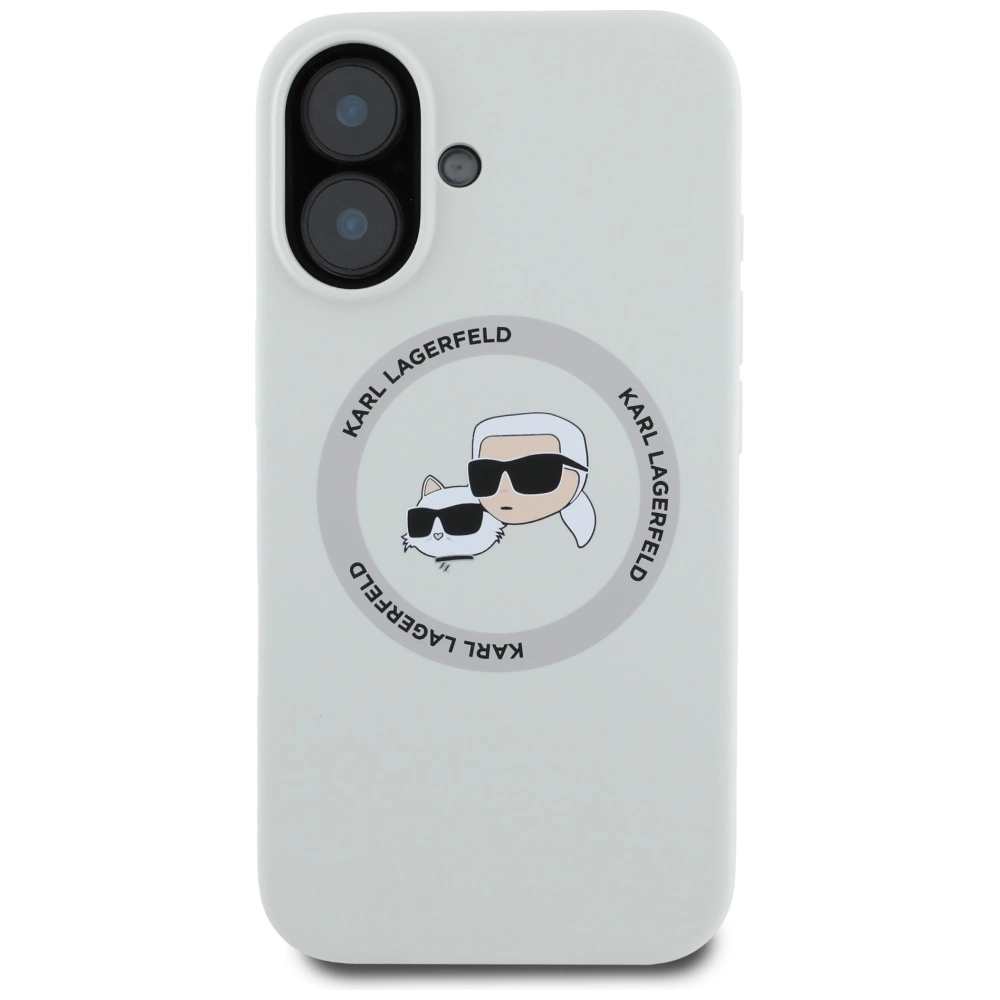 Etui Karl Lagerfeld IML Metal Karl & Choupette Heads MagSafe na iPhone 16e - białe