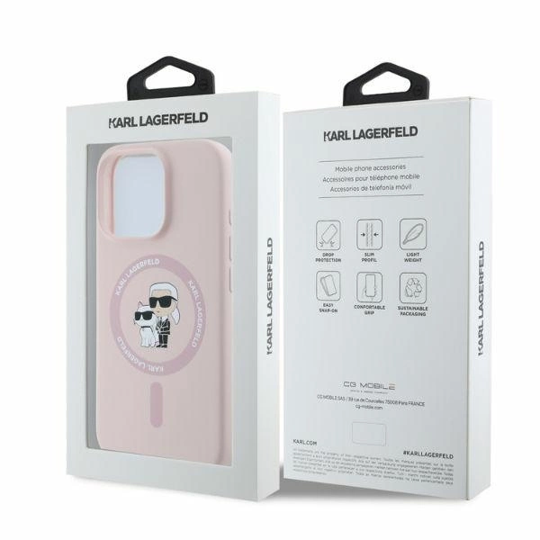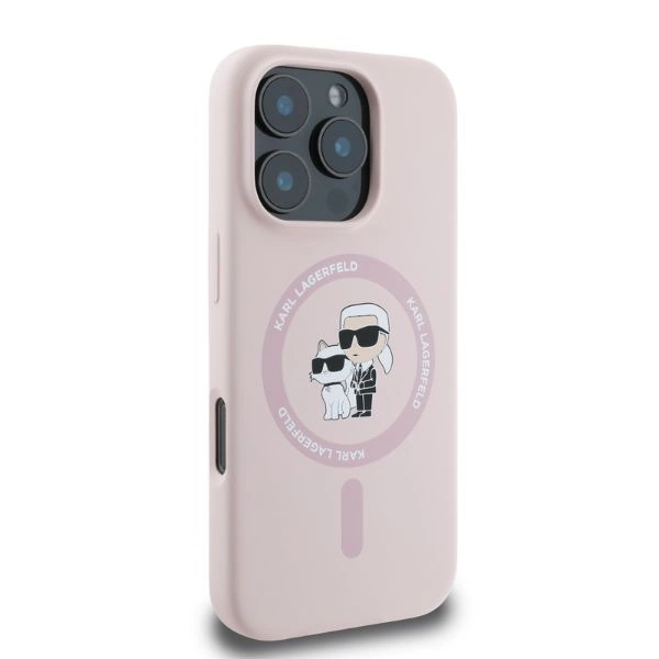 Etui Karl Lagerfeld Silicone Karl&Choupette Heads MagSafe na iPhone 16 Pro Max - różowe