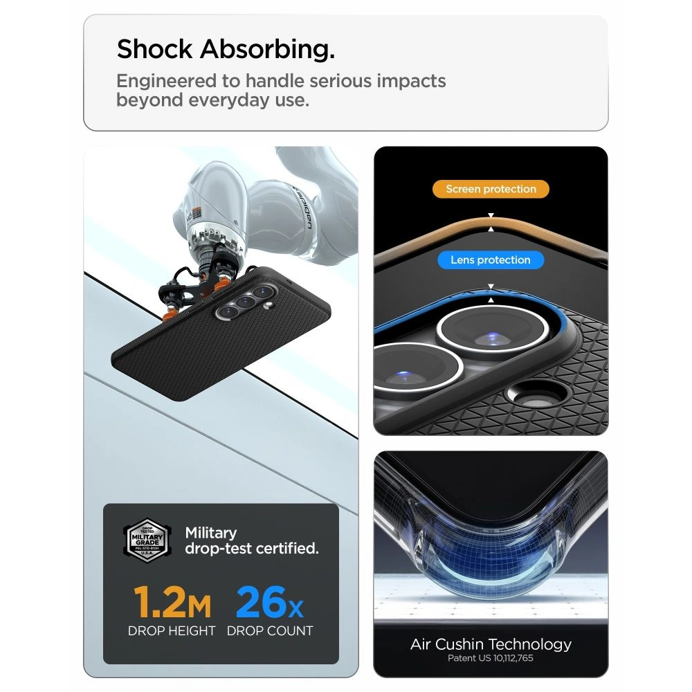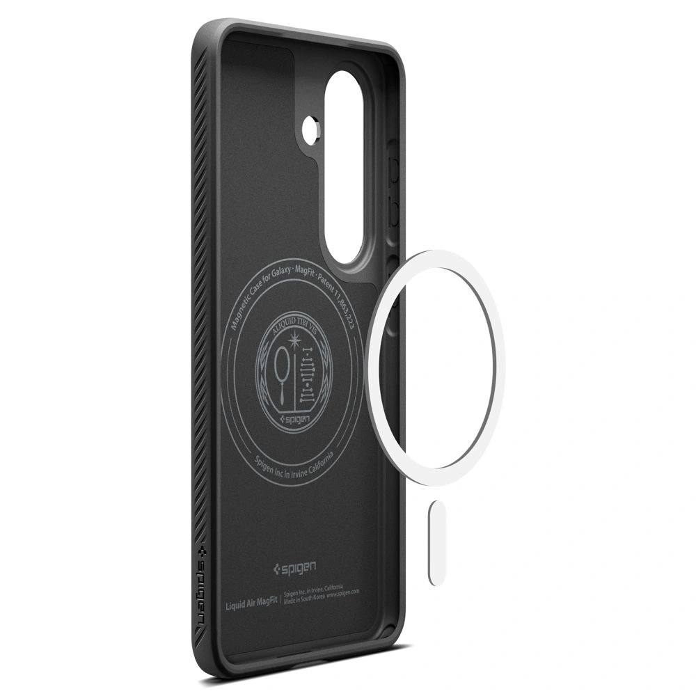 Spigen Liquid Air Mag to smukłe etui z wbudowanymi magnesami MagSafe, które łączy minimalistyczny design z niezawodną ochroną. Matowa teksturowana powierzchnia z charakterystycznym geometrycznym wzorem zapewnia pewny, antypoślizgowy chwyt i nadaje etui nowoczesny wygląd, odróżniając je od standardowych gładkich obudów.