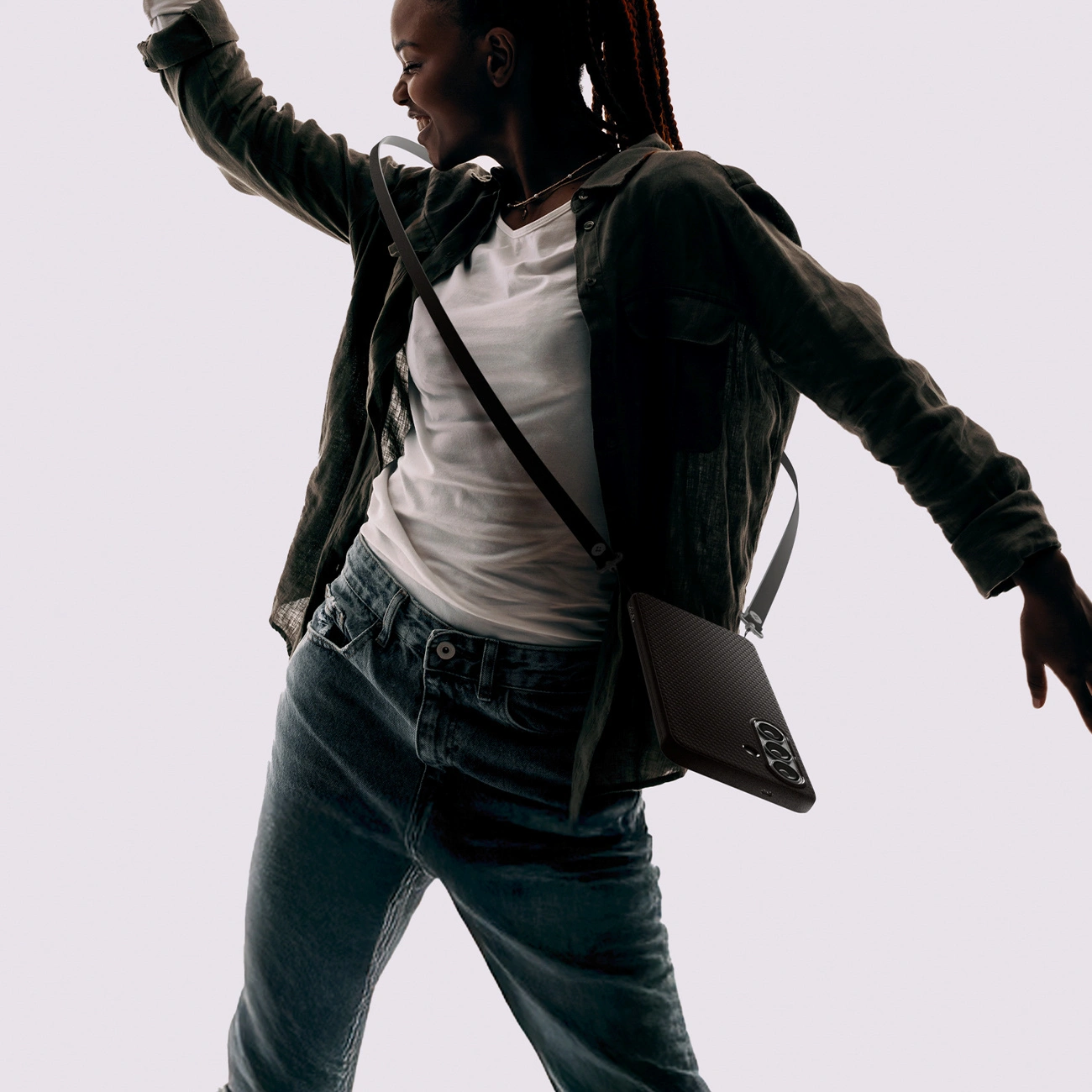 Smukły profil nie dodaje zbędnej objętości, zachowując poręczność telefonu w codziennym użytkowaniu. Podniesione krawędzie wokół ekranu chronią wyświetlacz przed zarysowaniami, gdy telefon leży ekranem do dołu, a przyjemne w dotyku wykończenie eliminuje ryzyko wyślizgnięcia z dłoni.