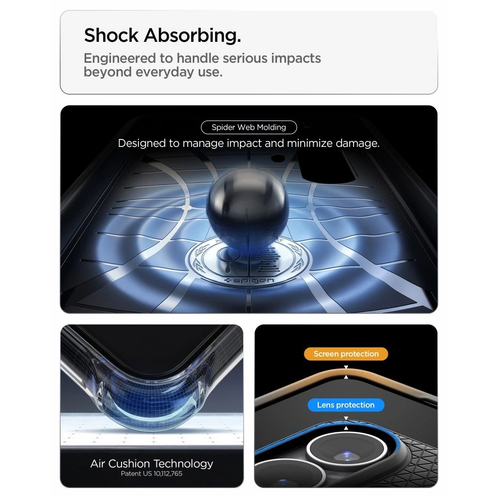 Technologia Air Cushion w narożnikach tworzy przestrzenie powietrzne, które skutecznie amortyzują uderzenia podczas upadków, chroniąc telefon przed uszkodzeniami w najbardziej narażonych punktach. Pełne pokrycie wypukłości aparatu wraz z precyzyjnymi wycięciami zabezpiecza soczewki przed codziennymi zarysowaniami, kurzem i kontaktem z różnymi powierzchniami. Przycisk sterowania aparatem chroniony jest cienką warstwą TPU, która zapewnia ochronę przy jednoczesnym zachowaniu pełnej funkcjonalności – możesz swobodnie korzystać z wszystkich funkcji bez żadnych ograniczeń.