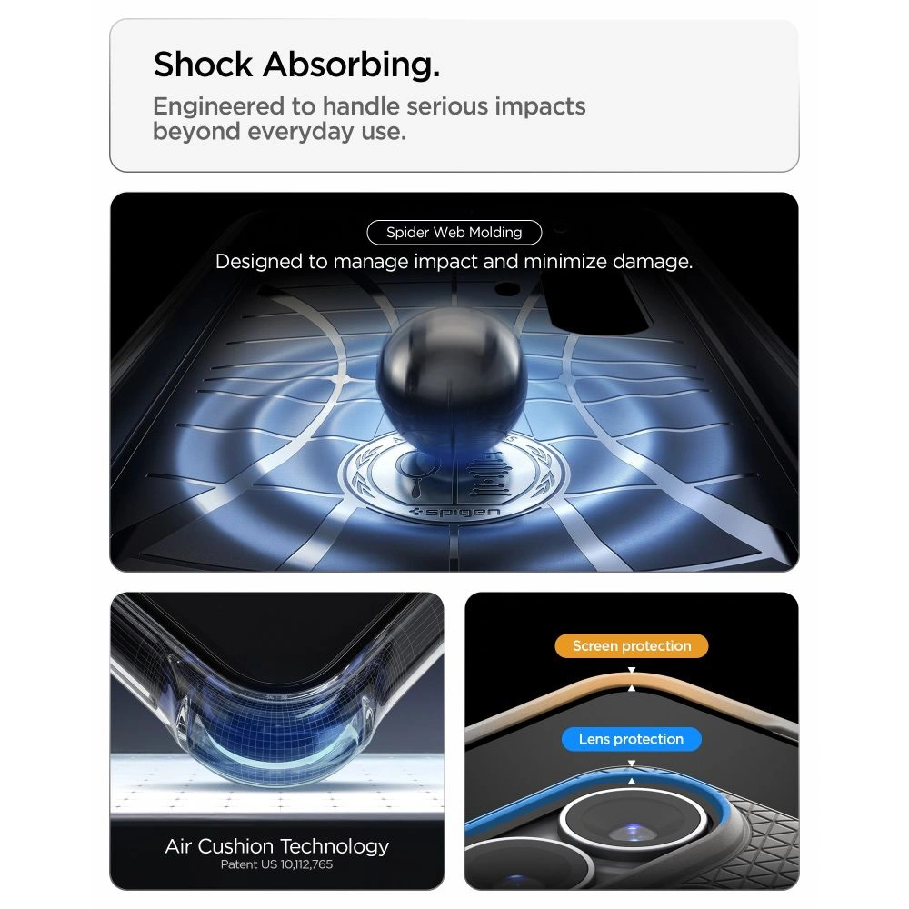 Technologia Air Cushion w narożnikach tworzy przestrzenie powietrzne, które skutecznie amortyzują uderzenia podczas upadków, chroniąc telefon przed uszkodzeniami w najbardziej narażonych punktach. Pełne pokrycie wypukłości aparatu wraz z precyzyjnymi wycięciami zabezpiecza soczewki przed codziennymi zarysowaniami, kurzem i kontaktem z różnymi powierzchniami. Przycisk sterowania aparatem chroniony jest cienką warstwą TPU, która zapewnia ochronę przy jednoczesnym zachowaniu pełnej funkcjonalności – możesz swobodnie korzystać z wszystkich funkcji bez żadnych ograniczeń.