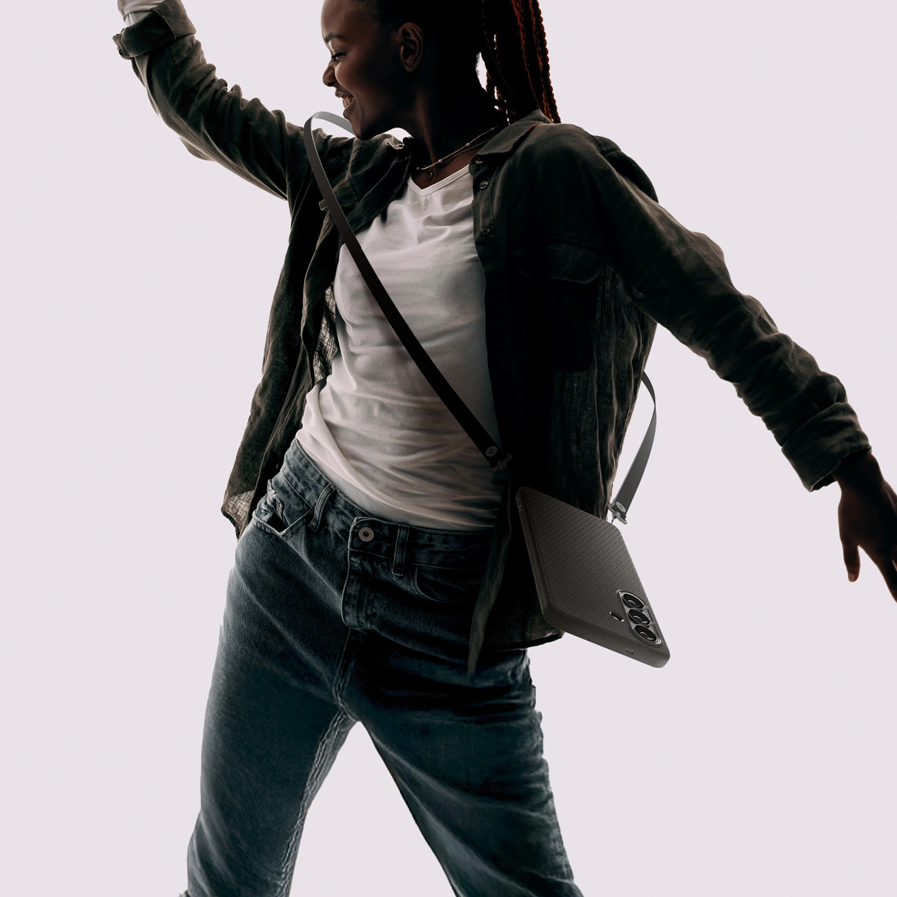 Smukły profil sprawia, że etui nie dodaje zbędnej objętości, zachowując poręczność telefonu i komfort codziennego użytkowania. Podniesione krawędzie wokół ekranu chronią wyświetlacz przed zarysowaniami, gdy telefon leży ekranem do dołu.