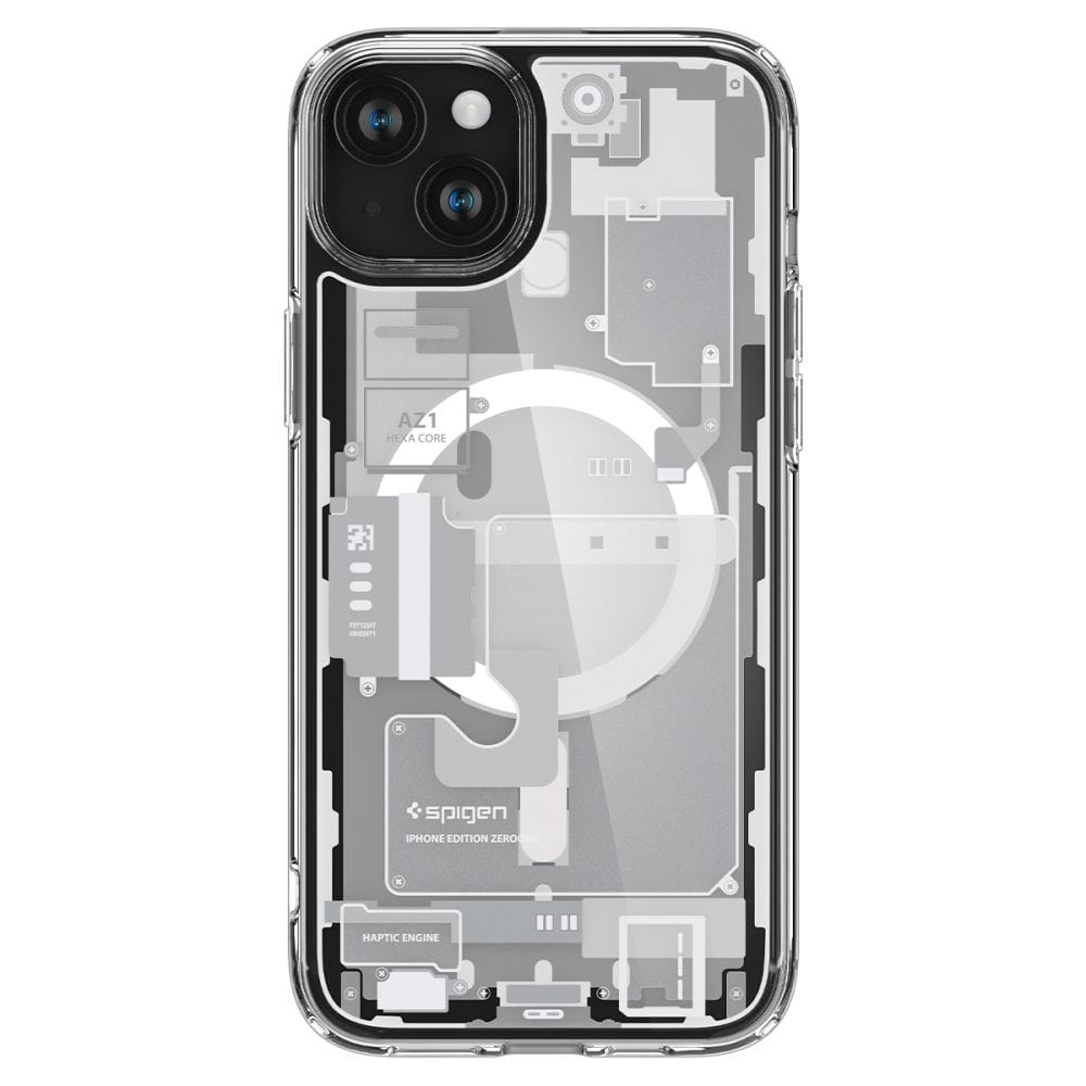 Etui Spigen Ultra Hybrid Mag z MagSafe na iPhone 15 Plus - białe (wzór Zero One)