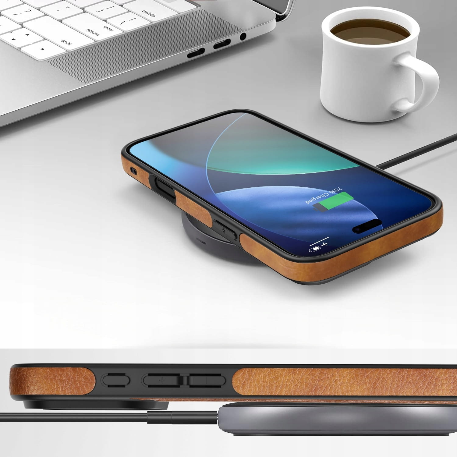 Etui wykonane z miękkiej i eleganckiej skóry ekologicznej stanowi połączenie funkcjonalności i świetnego wyglądu. Idealne dopasowanie do iPhone 17 Pro