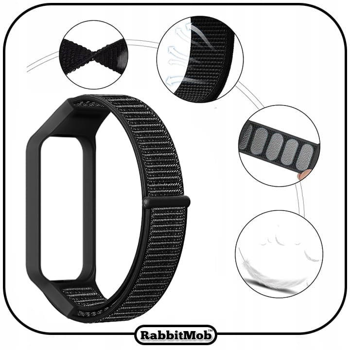 Pasek Nylonowy RabbitMob do Xiaomi Mi Band 8 Active/Redmi Smart Band 2 | Czarny