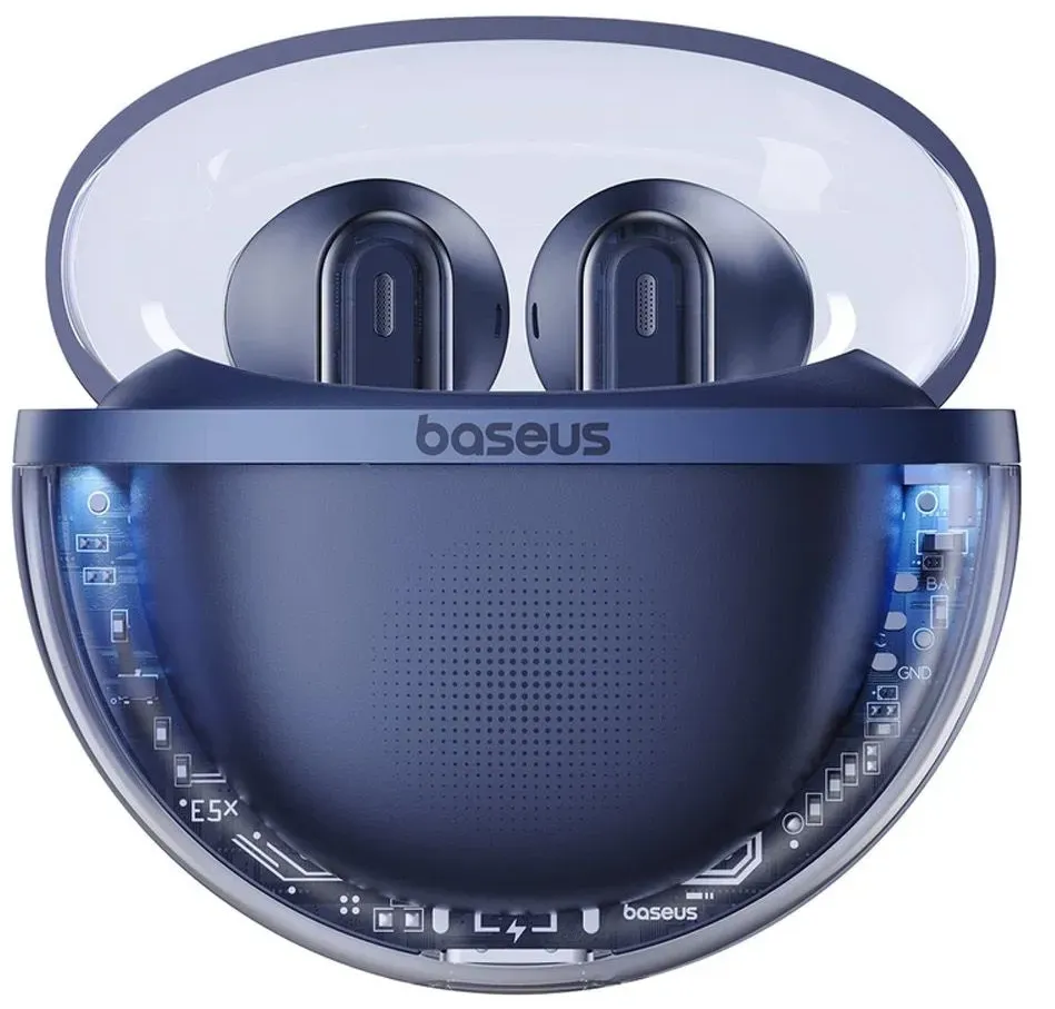 Przezroczysta kopuła słuchawek Baseus Bowie E5x wyróżnia je spośród konkurencji. Niebieskie podświetlenie etui i akcenty kolorystyczne nie tylko cieszą oko, ale także zwiększają funkcjonalność – łatwiej znajdziesz swoje słuchawki nawet w ciemności.