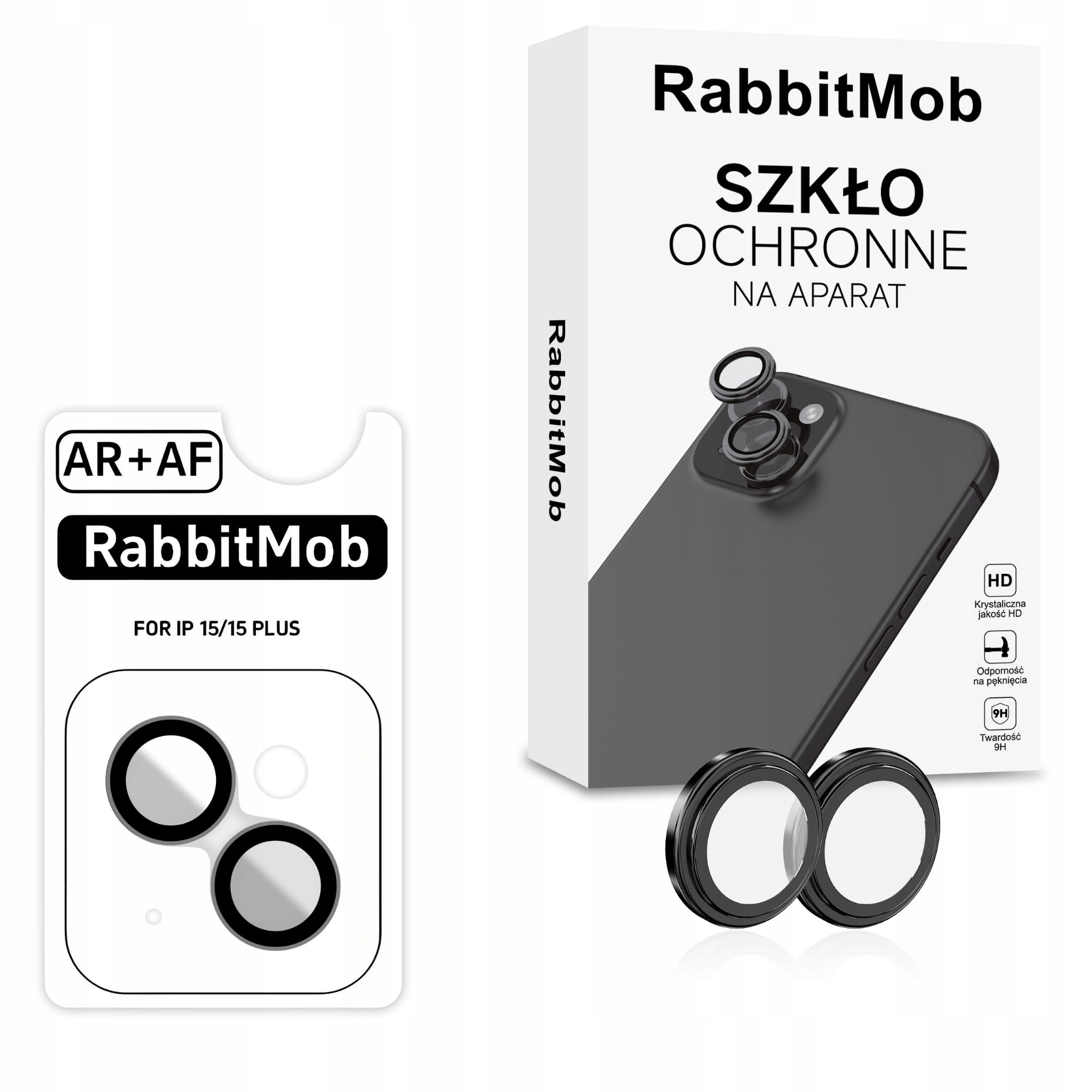 Szkło 9H RabbitMob na Aparat Tył 3D do iPhone 15 / 15 Plus + Aplikator